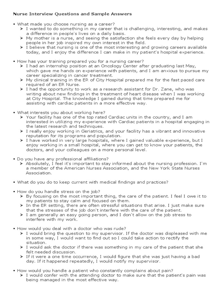 Nursing Job Interview Questions And Answers Pdf Nursing Patient